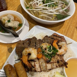 From crispy spring rolls to flavorful banh mi sandwiches, Pho Mymy Acadie has something for everyone. One standout dish is the Combo F, which includes a hearty bowl of homemade soup, imperial rolls, grilled beef, and chicken, served with your choice of rice or vermicelli. The perfect meal to warm you up on a cold day!